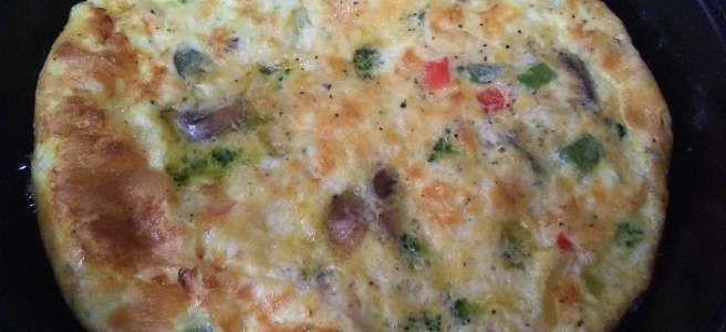 5. On the stovetop heat butter in the frying pan. Pour in egg mixture and cook on low until edges look slightly done.